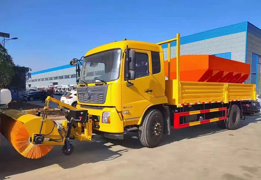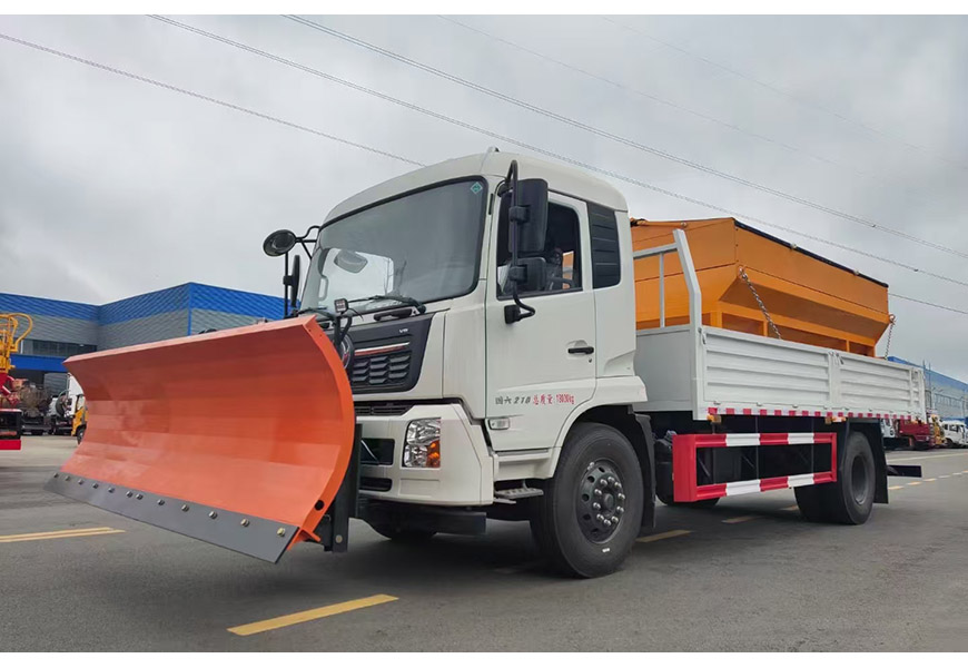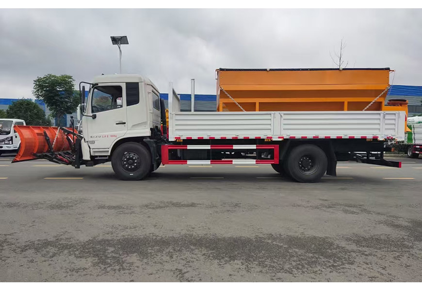上裝配置 整體避障除雪鏟,夜間工作燈,車取力重型除雪鏟(左右雙液壓驅動)可搭配8立方或者10立方融雪撒布機(獨立柴油動力,鏈條刮板輸送,采用V型料倉,頂部帶防雨罩,折疊式不銹鋼撒布盤)3-3.5米雪鏟、3-3.5米雪鏟及撒布機均采用集成按鍵駕駛室操作。