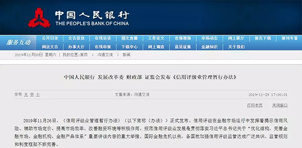 同時,《辦法》還注意與分市場、分品種業務管理規則相互銜接,明確“法律法規和有關業務管理部門制定的信用評級機構監督管理規則中另有規定的,適用其規定”。