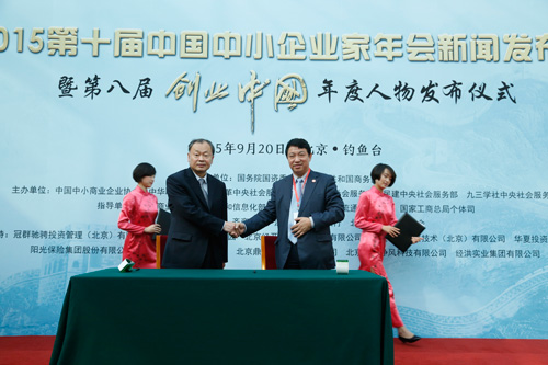 (本網訊 劉夢陽)由中國中小商業企業協會、中華職業教育社、中國商業聯合會和民革中央、民盟中央、民建中央、九三學社中央等社會服務部門聯合主辦,包商銀行冠名的2015第十屆中國中小企業家年會新聞發布會于9月20日在北京釣魚臺國賓館召開。年會作為商務部重點支持的精品活動,將于11月27-29日在北京舉行。