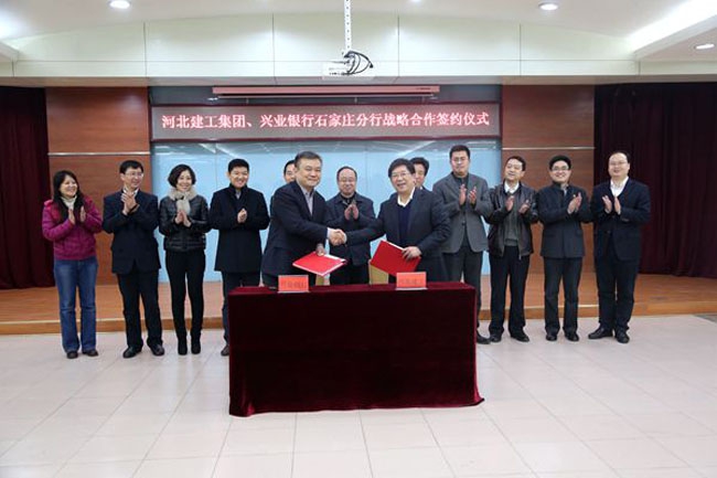 2016年1月29日,在長期友好合作的基礎上,河北建工集團有限責任公司與興業銀行股份有限公司石家莊分行簽署了《河北建工集團有限責任公司、興業銀行股份有限公司石家莊分行河北省PPP項目及政府基礎設施建設投資與運營全面戰略合作協議》,興業銀行股份有限公司石家莊分行將向河北建工集團有限責任公司提供總規模為200億元的PPP項目及政府基礎設施建設資金支持。通過簽署戰略合作協議,雙方進一步明確了在河北省PPP項目及政府基礎設施投資建設運營領域的發展愿景和合作方式,拓展了雙方戰略合作的領域,凝聚了雙方攜手發展的共識。