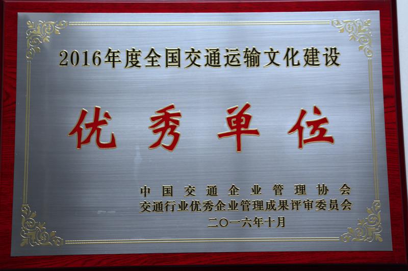 近日,從中國交通企業管理協會傳來喜訊,公司被中國交通企業管理協會和交通行業優秀企業管理成果評審委員會聯合授予“2016年度全國交通運輸企業文化建設優秀單位 ”榮譽稱號。至此,公司已連續三年獲此殊榮。