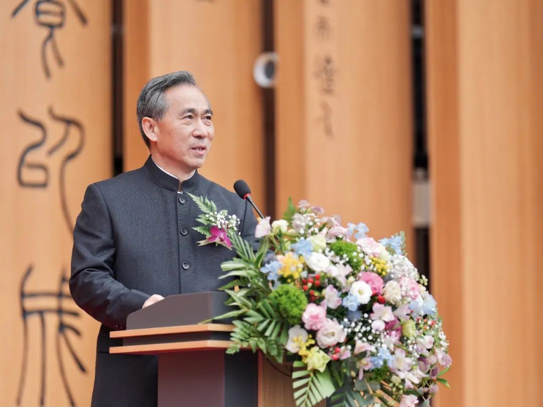 任鴻斌現場宣布大阪世博會中國館正式開館,同與會嘉賓共同觀看中日友好紀念舞劇《朱鹮》,并現場參觀中國館。