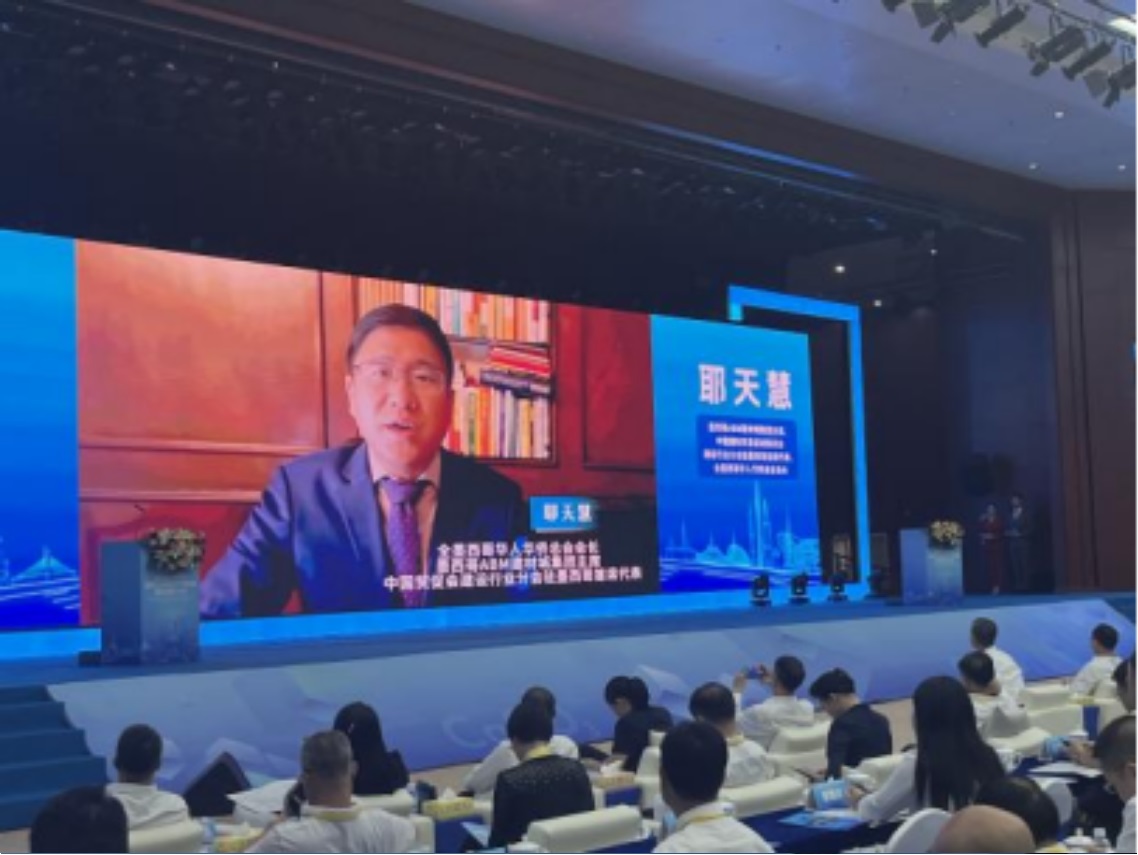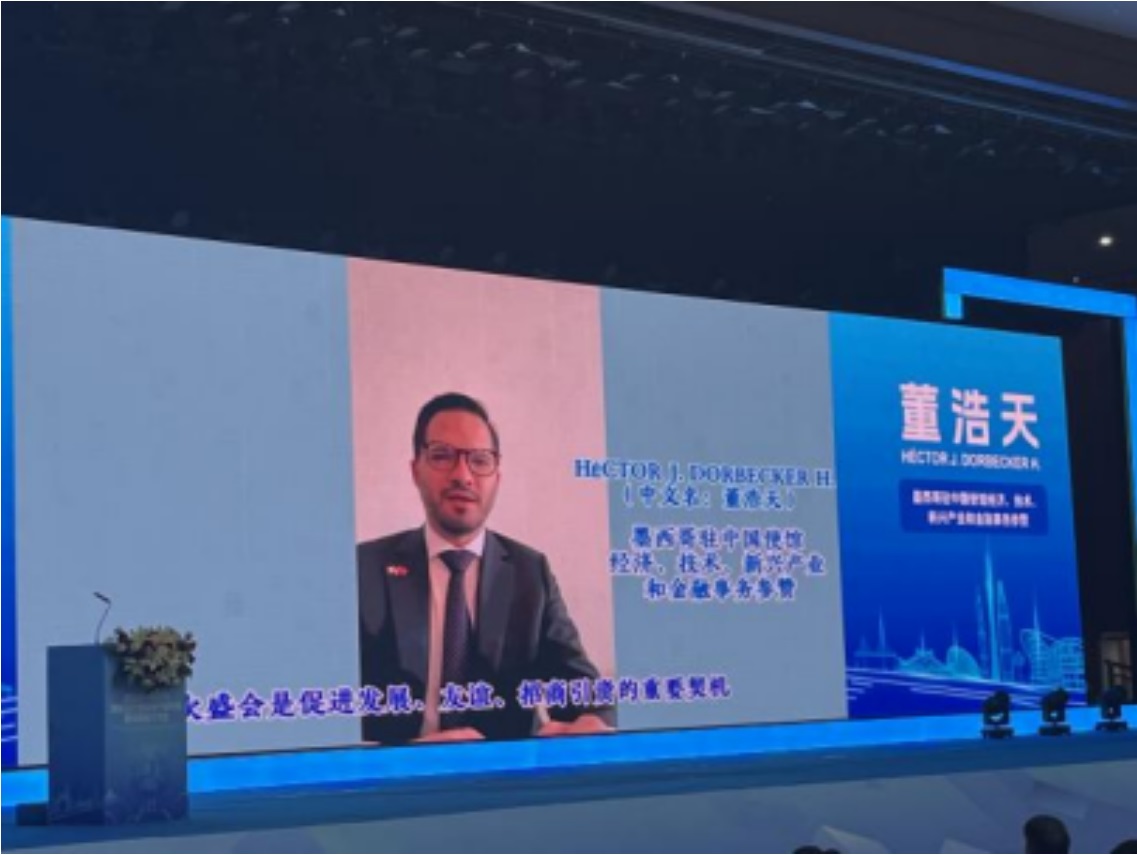 在 “建設產業國際合作交流基地(石材碳酸鈣)”授牌儀式上,墨西哥駐中國使館經濟、技術、新興產業和金融事務參贊HÉCTORJ.DORBECKER H.(中文名字:董浩天),中國貿促會建設行業分會駐墨西哥首席代表、全墨西哥華人華僑總會會長、墨西哥ABM建材城集團主席耶天慧先后發表視頻賀詞,并表示期待未來能與賀州市在相關領域展開深入合作。