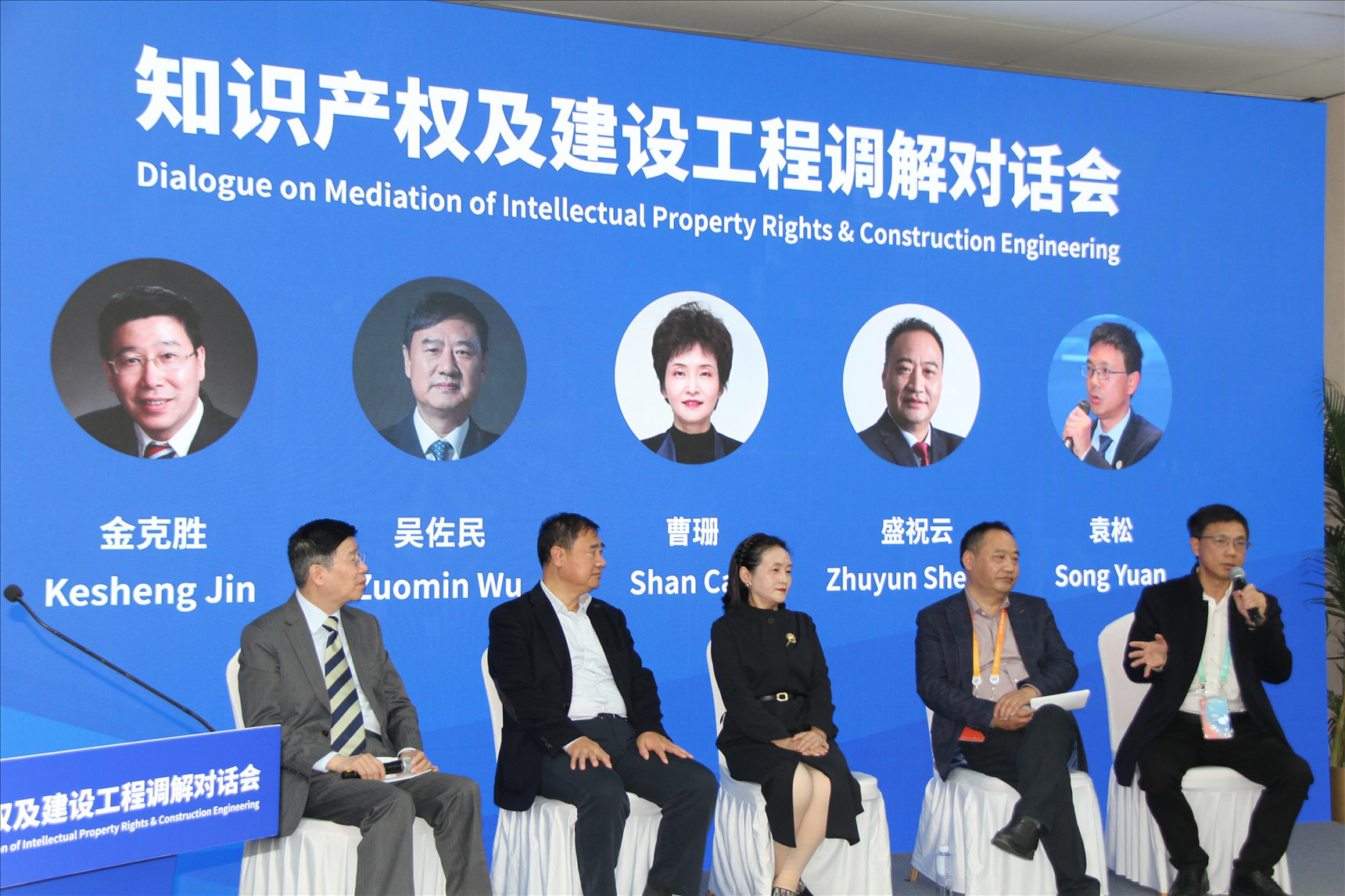 在建設工程調解對話環節,來自中國知識產權法學研究會副會長金克勝、北京市建設工程招標投標和造價管理協會會長吳佐民、北京德恒律師事務所高級合伙人曹珊、武漢市政協委員、復坤集團(武漢)企業管理有限公司董事長盛祝云、雄安新區造價協會副秘書長、大為國際工程咨詢有限公司董事長袁松五位專家分別從建設工程調解領域開展對話交流。