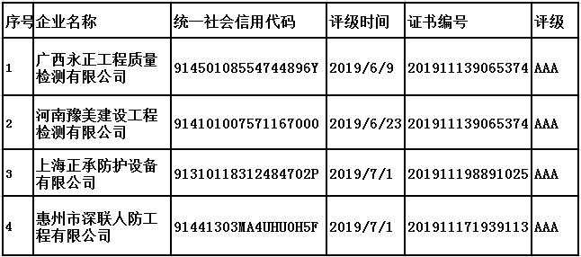 根據《國務院關于印發社會信用體系建設規劃綱要(2014—2020年)的通知》(國發〔2014〕21號)的文件精神,中國國際經濟技術合作促進會與商務部中國國際電子商務中心下屬企業北京國富泰信用管理有限公司聯合開展了2019年信用等級的申報評價工作。本著自愿、誠信、公正、科學、嚴格的原則,經企業自愿申報、協會初審、中促會信用工作委員會和北京國富泰信用管理有限公司專家評審組終審,確定了4家企業信用等級。 現將評價結果予以公示,征求社會各方面的意見。