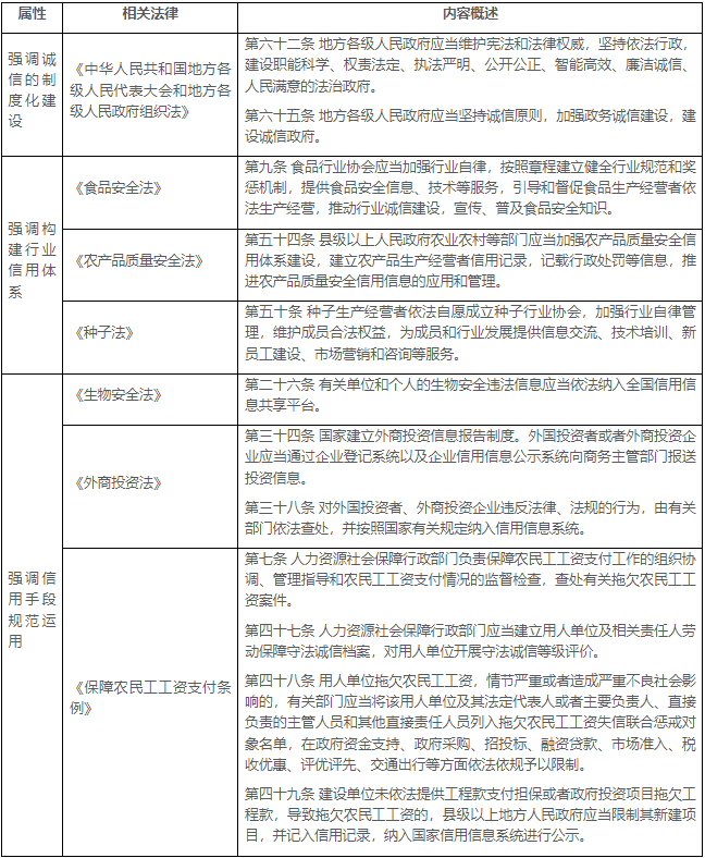 (一)現(xiàn)行法律和行政法規(guī)設(shè)列信用條款的情況