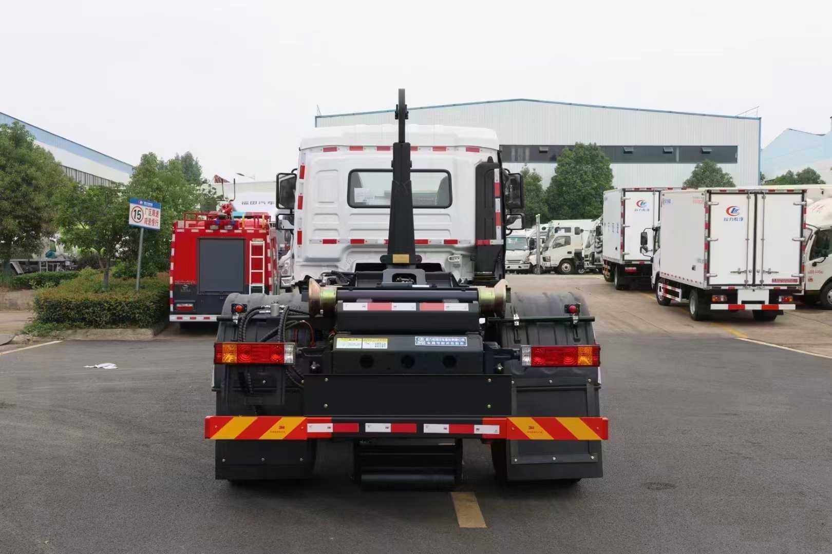 上裝配置 配套14-16方勾臂垃圾箱或移動(dòng)站,主勾臂由高強(qiáng)度板材制作,雙油缸控制,伸縮式主臂,加強(qiáng)型上裝結(jié)構(gòu),液壓支腿,橫向鎖緊,品牌多路閥,進(jìn)口柱塞泵,標(biāo)配室內(nèi)外操作(帶遙控),防誤操作,帶平衡閥,液壓鎖。