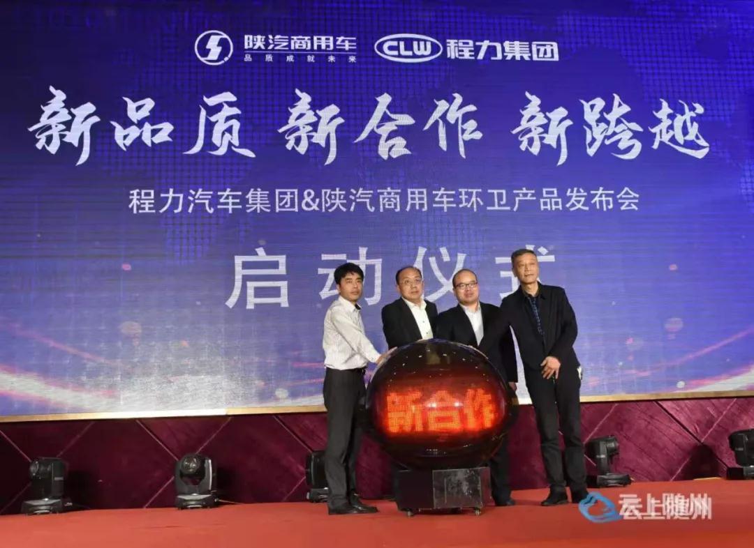 程力汽車集團黨委副書記、集團公司常務副總經經理、程力(湖北)底盤供銷公司董事長程國強,陜汽商用車銷售公司副總經理魏宇龍,程力集團副總經理、底盤供銷公司總經理劉峰,陜汽商用車銷售公司專用車部部長穆瑋周共同啟動水晶球,宣布程力集團陜汽商用車環衛系列產品正式發布。
